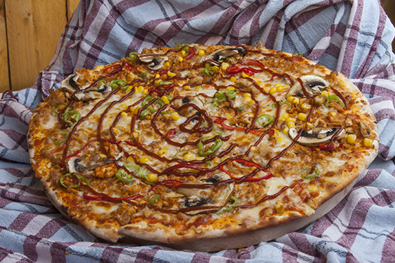 Pizza Sosu • Mozarella Peyniri • Taze Kaşar Peyniri  • Soslu Tavuk • Yeşil-Kırmızı Biber • Mısır • Mantar • Barbekü Sos