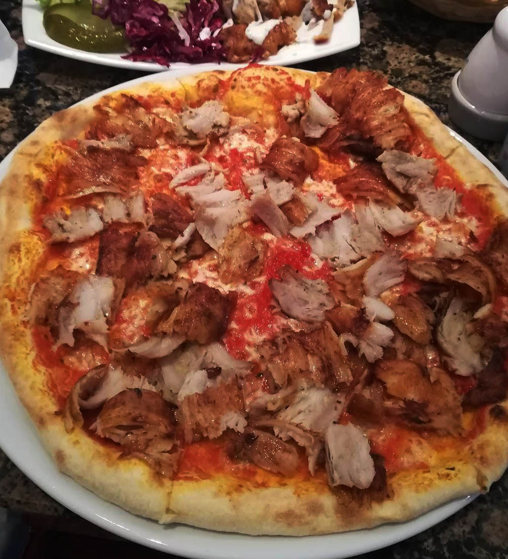 Pizza Sosu • Taze Kaşar Peyniri • Mozarella Peyniri• Kıbrıs Hellim Peyniri • Kıbrıs Pastırması • Yeşil-Kırmızı Biber • Mısır • Mantar